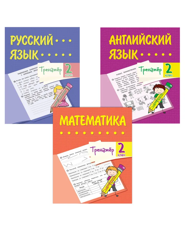 Школьный тренажер Учитель Математика Русский и английский язык 2 класс Набор из 3-х тетрадей