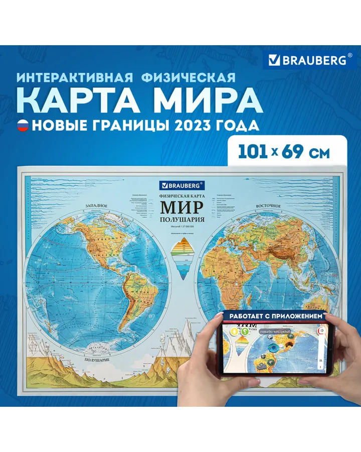 Глобус Globen Земли рельефный с подсветкой 32 см + Карта настольная