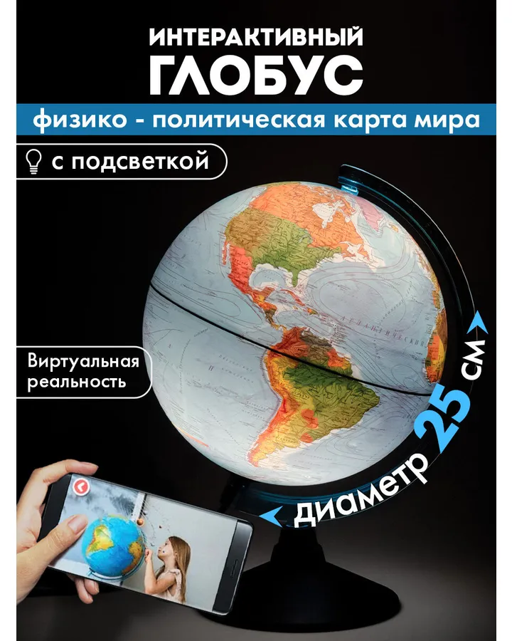 Глобус Globen интерактивный физический политический с подсветкой и VR очками 25 см