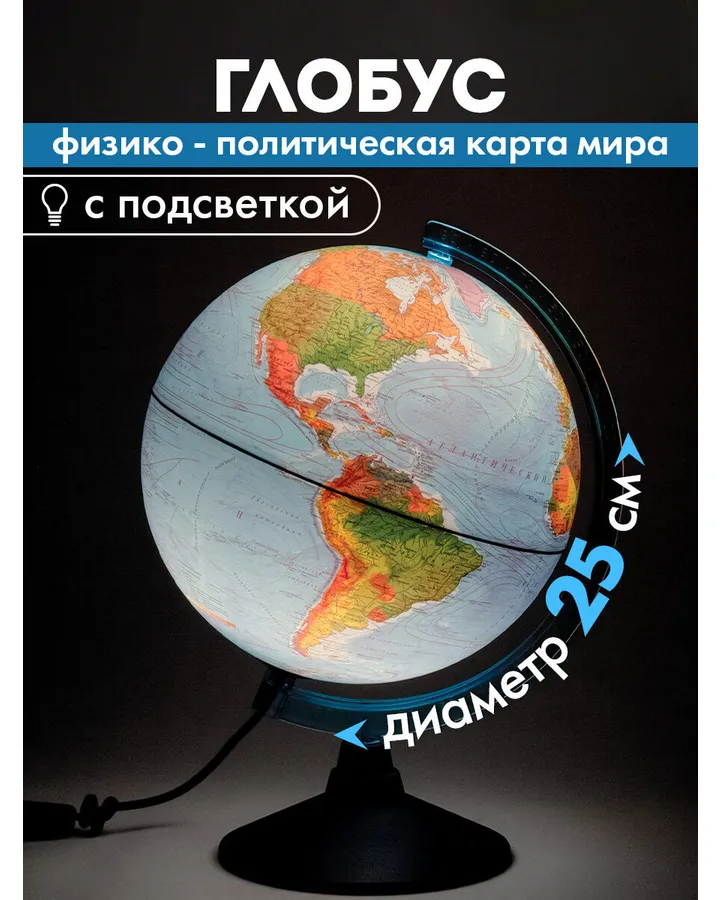 Глобус Globen физический политический с подсветкой диаметр 25 см