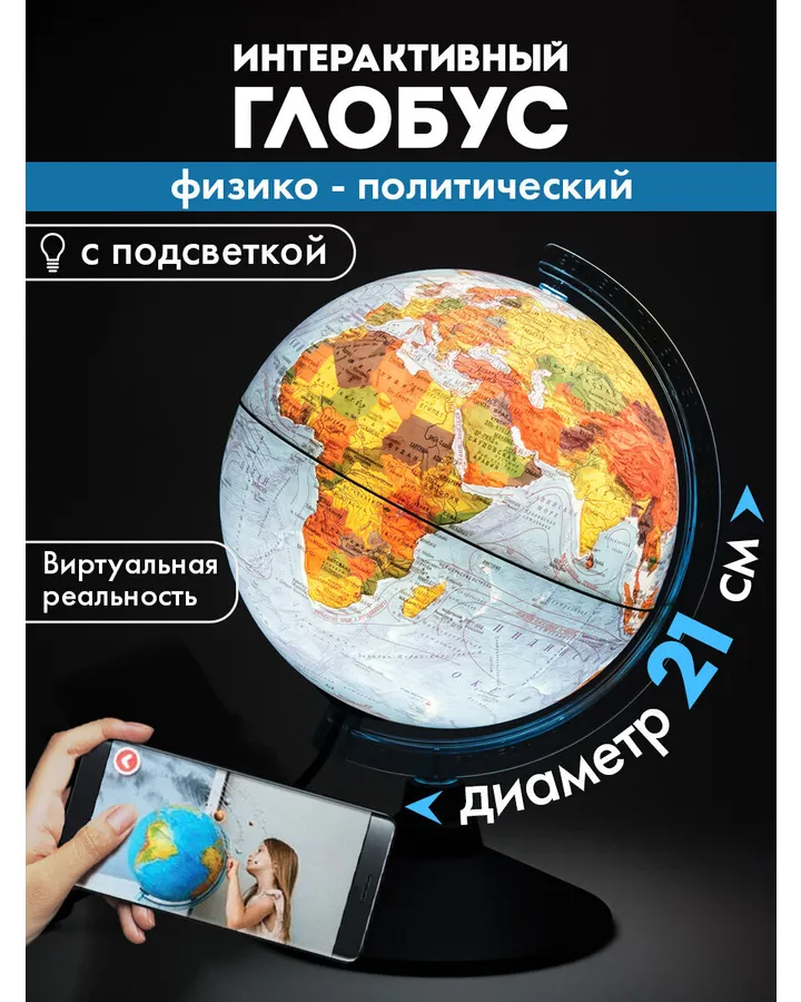 Глобус Globen интерактивный физический политический с подсветкой и VR очками 21 см