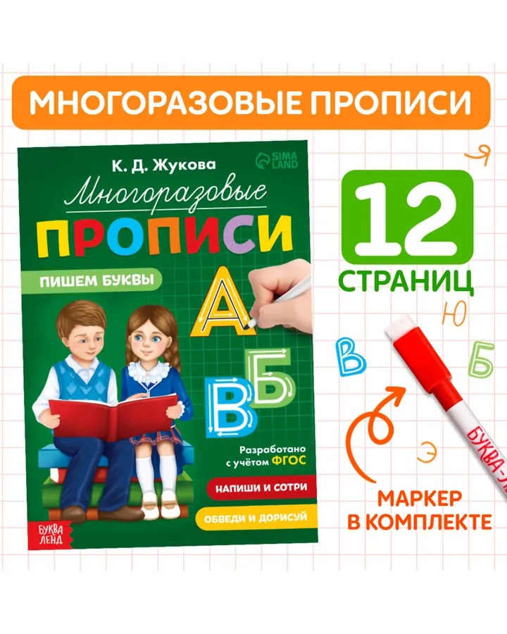 Многоразовые прописи Буква-ленд Пишем буквы 12 стр маркер