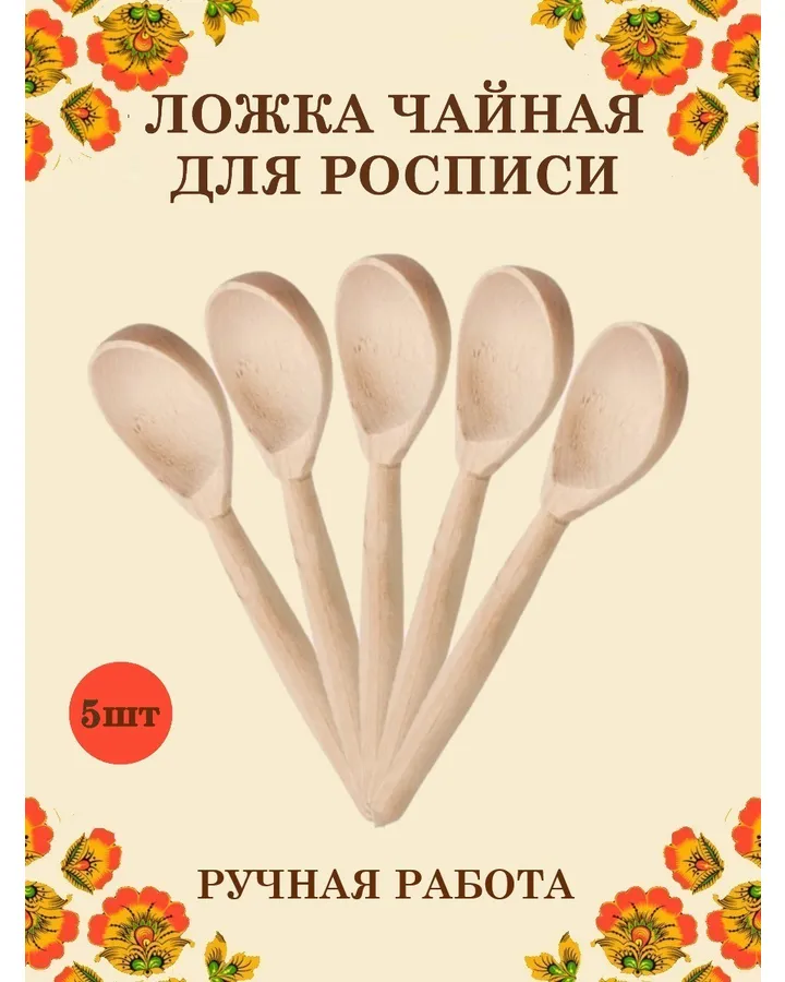 Ложка деревянная чайная Хохлома Оптом музыкальная расписная 5 шт.