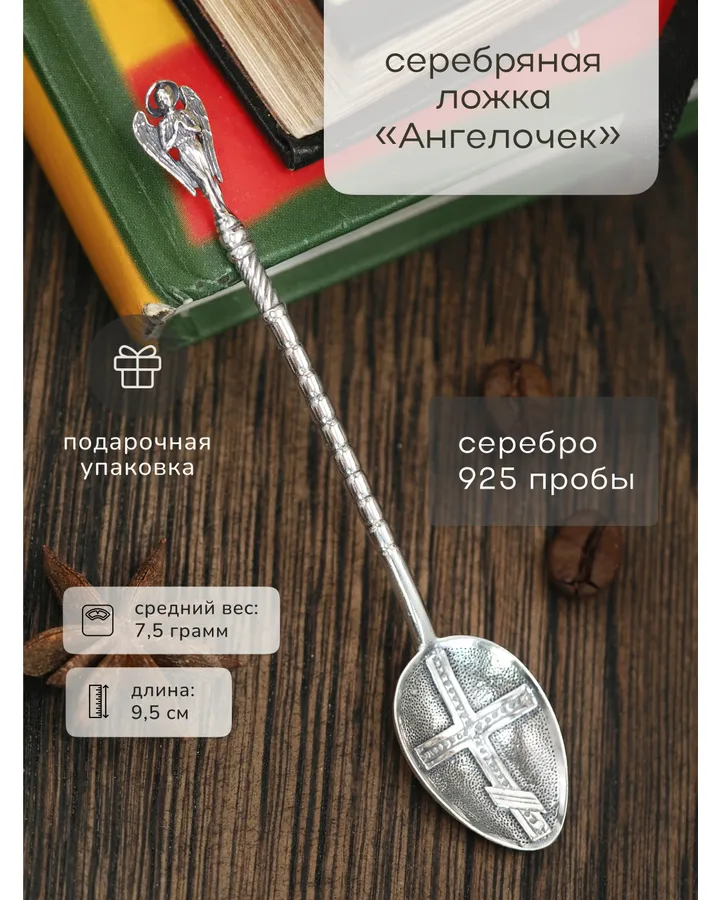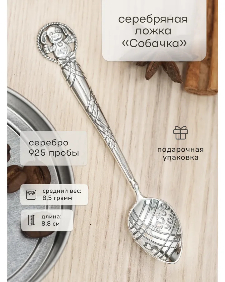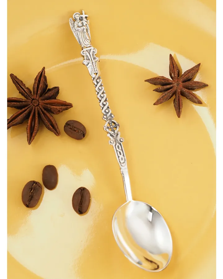 Ложка кофейная Кольчугинский мельхиор №1 посеребренная с чернением в футляре