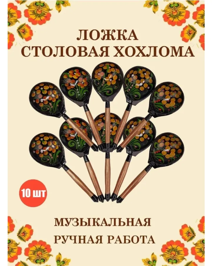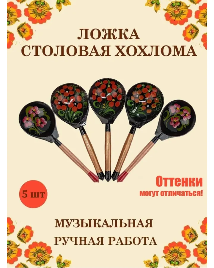 Деревянные ложки столовые Хохлома Оптом музыкальные расписные набор 8 шт.