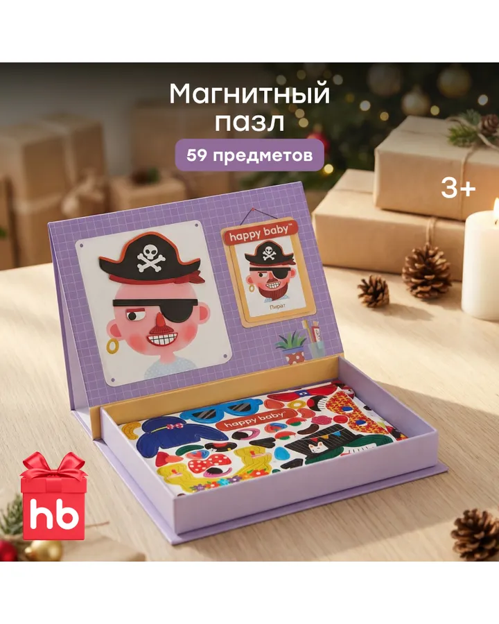 Магнитная мозаика Happy Baby Happy FacesРебенку понравилась игрушка. Собирает мордашки по картинкам и придумывает свои из имеющихся деталей.