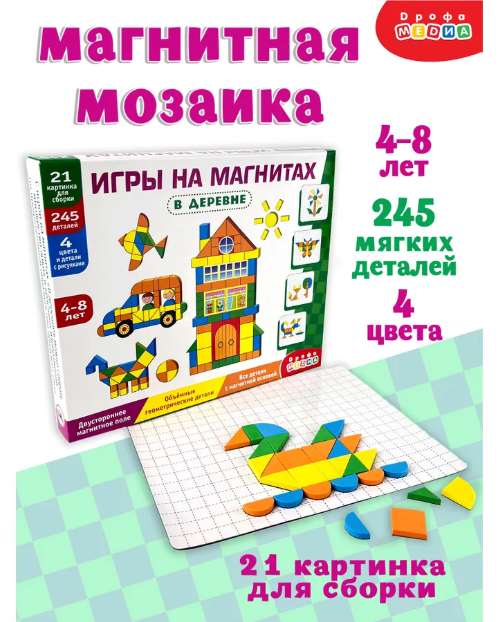Магнитная мозаика Дрофа-Медиа В деревнеОтлично, сама с удовольствием собираю. Ребенок, 3,5 года, тоже увлекся.