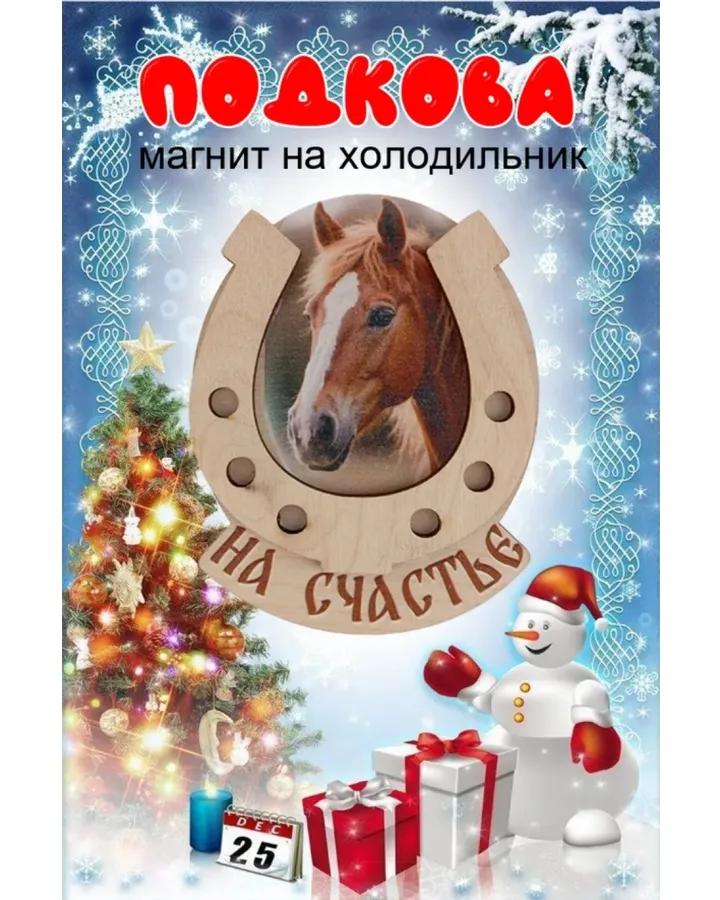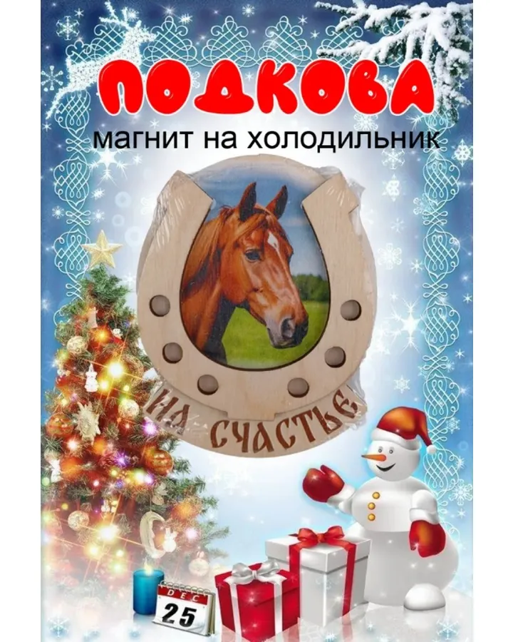 Магнит на холодильник Задира подкова новогодний символ года 2026 Лошадь