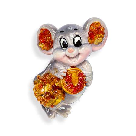 Магнит из керамики Янтарь России с янтарем Веселый мышонок с денежкой