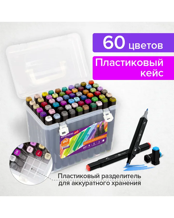 Скетчмаркеры Brauberg двусторонние 60 цв.
