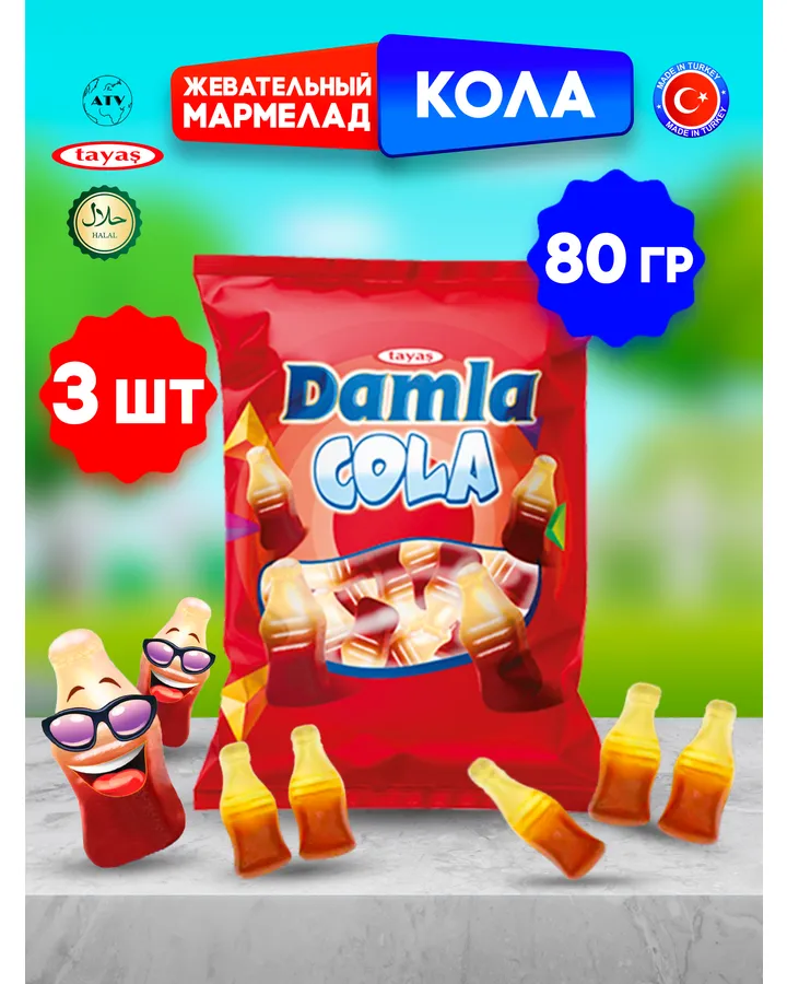 Жевательный мармелад TAYAS Damla кола 3х80г