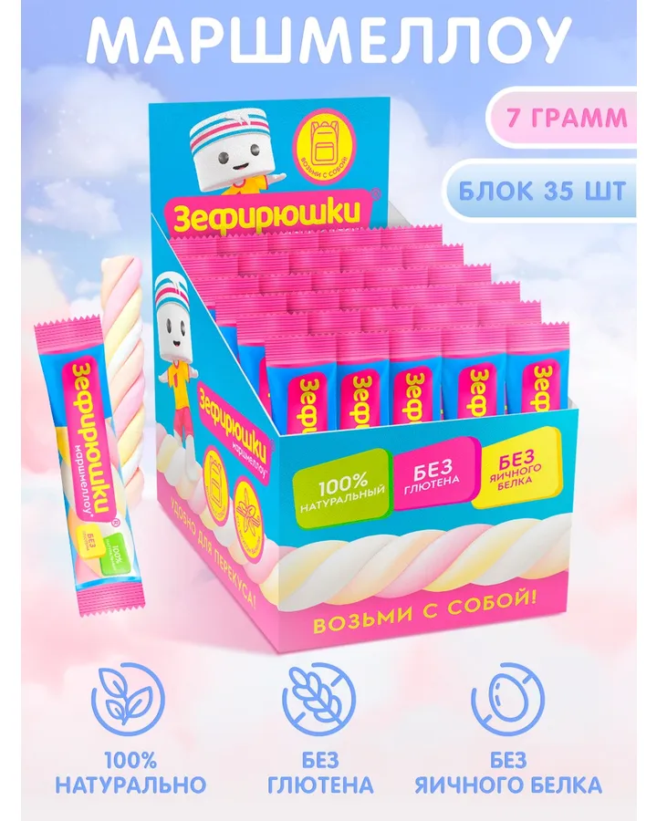 Воздушный зефир Сладкая сказка косичка 12 г х 30 штХороший зефир. Детям понравился.