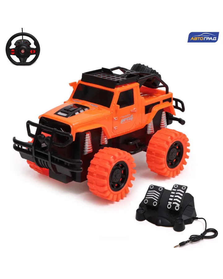 Управление осуществляется пультом, который идет в комплекте. В зависимости от модели он может иметь разные кнопки и режимы, но принцип у всех один — машинку можно направлять вперед-назад и влево-вправо.