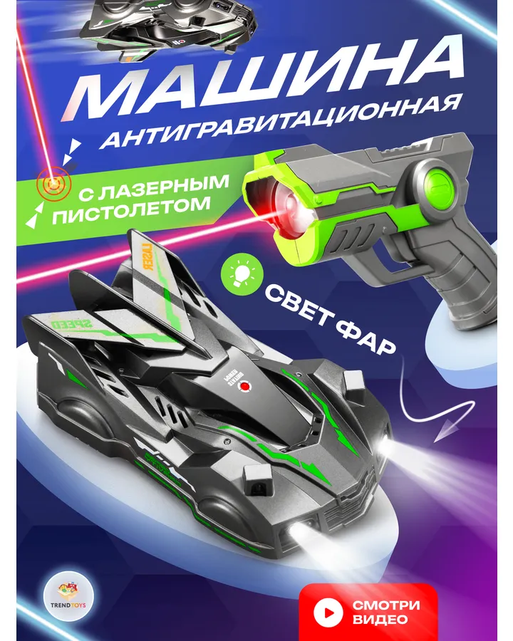 Автомобиль РУ TrendToys Антигравитационная машинкаИнтересная задумка у машины. Мы брали в подарок ребёнку на др, все на месте, полная комплектация. Понятная инструкция. Машинка небольшая, красивой необычной формы и дизайна. Однозначно советую к покупке
