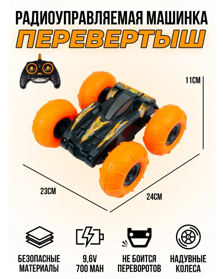 Классная машинка. Аккумулятор входит в комплект, супер что не надо покупать батарейки, + игольчатый насос. Колеса можно подкачивать, что очень понравилось ребёнку. Разгоняется отлично. Заряда хватает минут на 20-25мин.безостановочной игры. Машинка большая. За счёт надувных колёс-не разбивается, при ударе о препятствия-переворачивается.