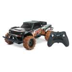 Пока не начались проблемы машинка была отличной, в частности - огромный сход колёс (на фото). Странное описание игрушки, это же краулер заточенный на проходимость, соответствующая подвеска, колеса, заблокированные мосты (конечно, мостов никаких нет, но колеса крутятся парами) из-за чего радиус разворота просто огромный.