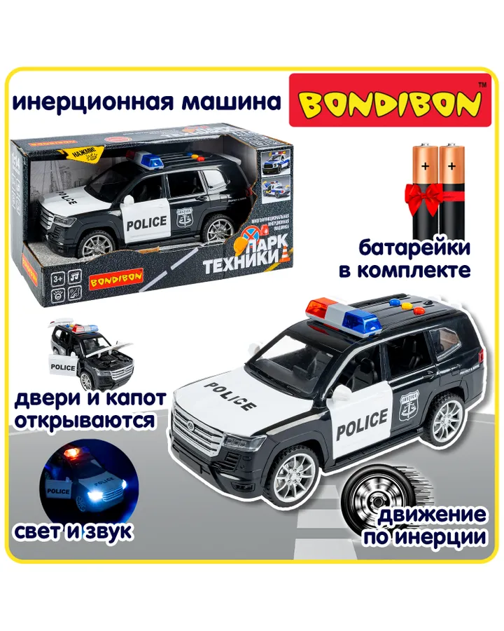 Пожарная машина Bondibon Инерционная машинка свет звук 1:20