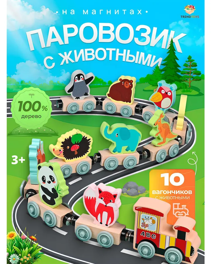 Детский музыкальный паровозик с вагонами TrendToys интерактивныйОчень понравился паровозик. Прежде всего хочу отметить надёжную фиксацию в коробке,ничего не повредилось при доставке. Качество самого пластика отменное и цветовая гамма хорошо подобрана! Смотрится симпатично,а если нажать на кнопку-то быстро катится и проигрывает веселую мелодию. Ребенок доволен