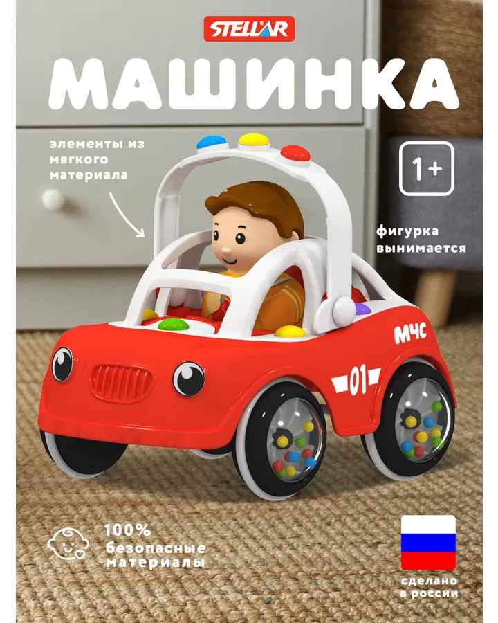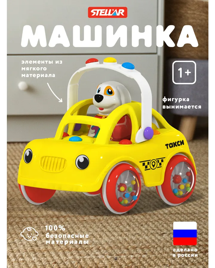 5Автомобиль СтелларПолучили машинку , и обрадовались !!!! Думали будет небольшая с ладошку , а на самом деле машинка хороших размеров . В машинке сидит собачка она же погремушка которую можно достать из машинки , у машинки крыша силиконовая ,малышам можно погрызть, в колёсах машинки шарики, и сама машинка тоже как погремушка . В основании крыши имеется ручка , за которую ребёнок может брать и нести машинку. Рекомендую !!! А если ещё и по акции то вообще сокровище!