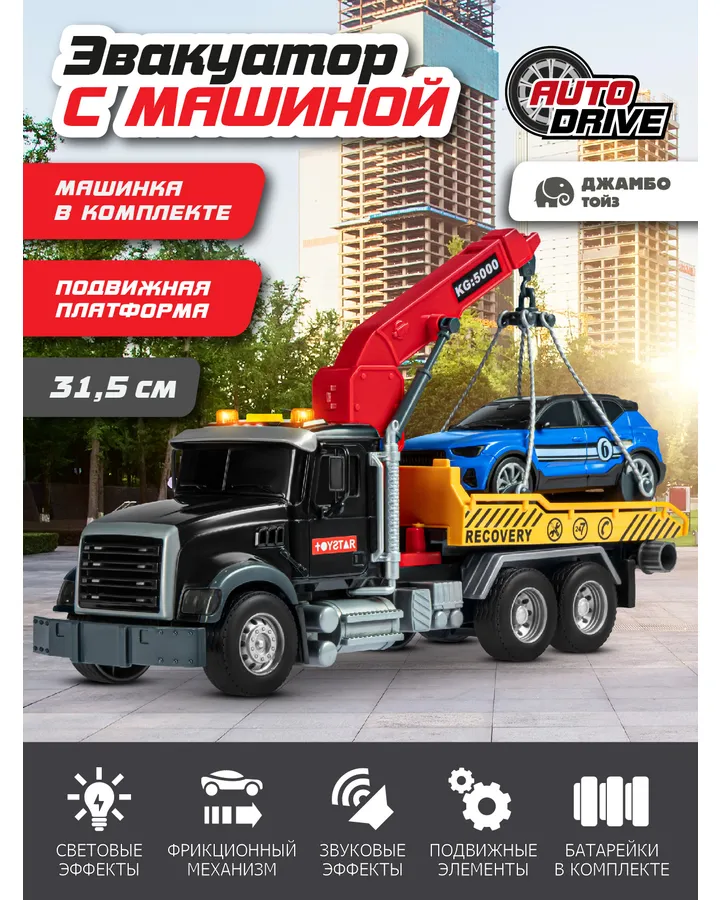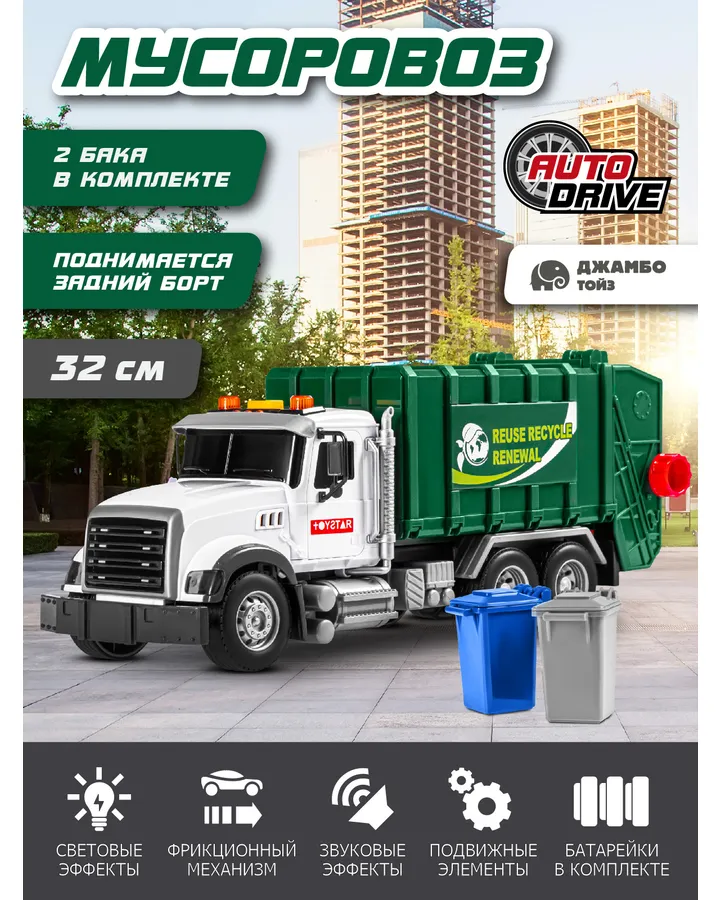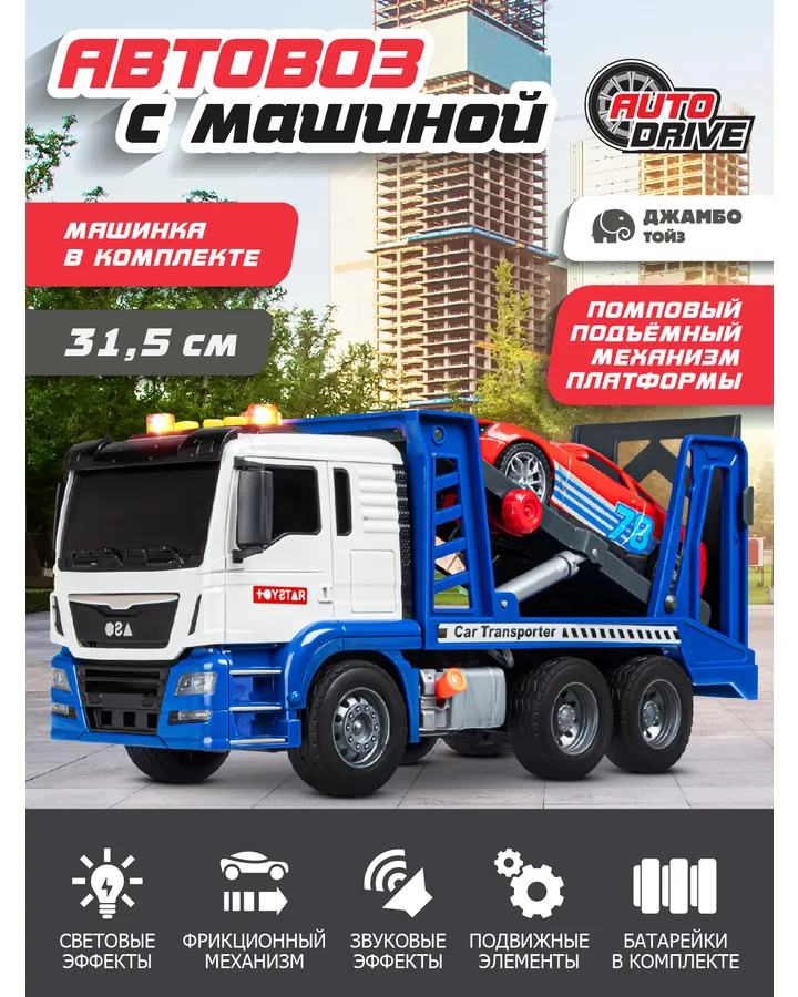 Грузовик AUTODRIVE СамосвалОтличный самосвал. Пластик качественный. Покупали ребёнку на два годика. Инерционный механизм супер, звук классный! Спасибо!