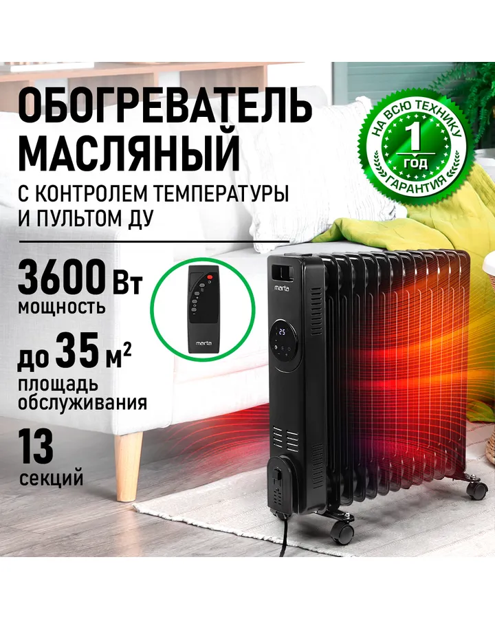 Обогреватель конвектор масляный радиатор MARTA MT-OH2430A черный жемчуг