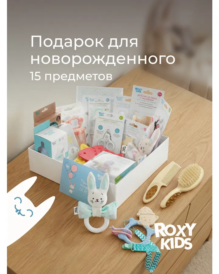 Набор для новорожденного ROXY-KIDS подарочный BUNNY BOX 15 предметов