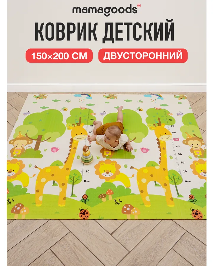 Развивающий коврик детский Mamagoods для ползания складной двусторонний игровой 150 x 200 см