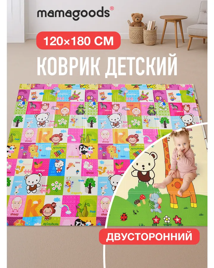 Развивающий коврик детский Mamagoods для ползания складной двусторонний игровой 145 x 180 см