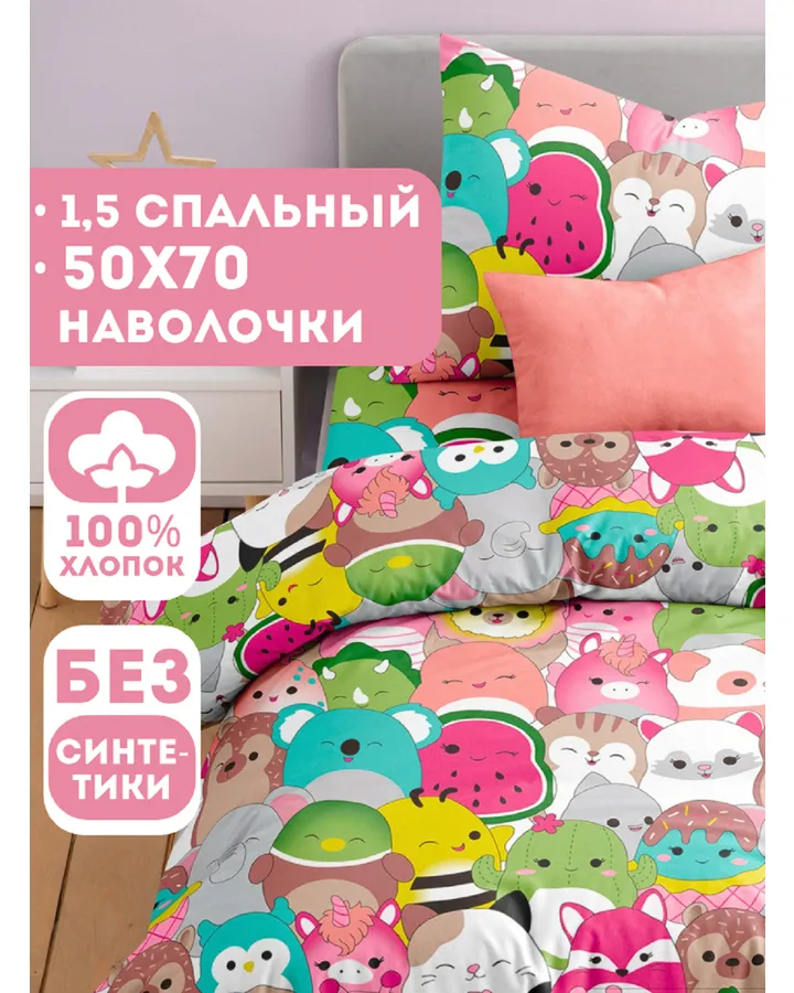 Комплект постельного белья Ночь Нежна Сквишки полутораспальный 3 предм.