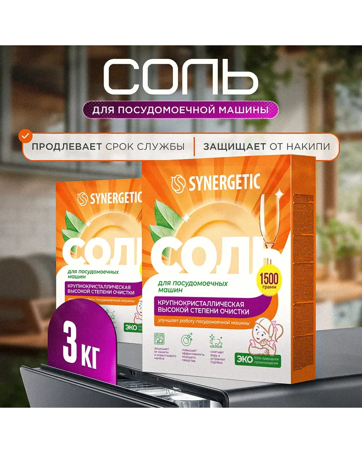 Соль для посудомоечной машины Synergetic 1500 г