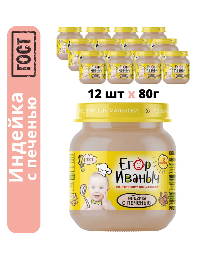 Пюре Егор Иваныч Индейка с 6 мес 80 г 12 упак.