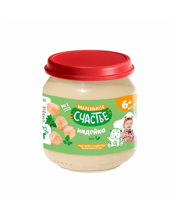 5Пюре Маленькое счастье Цыпленок с 6 мес 80 гПюре вкусное. Ребенок есть с удовольствием. С 6 месяцев. Консистенция отличная, густая. Не жидкое - как у других фирм.