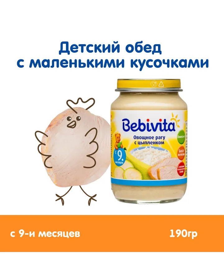 Пюре Bebivita Овощное рагу с цыплёнком с 9 мес 190 г