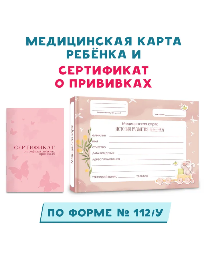 5Комплект 396 медицинская карта 7бц розовая+сертификат о профилактических прививках. розовыйРекомендую, толстый переплет, не будет мяться