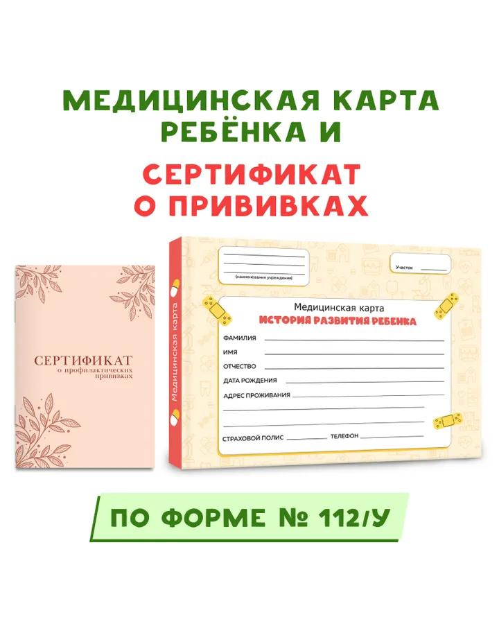 5Комплект 394 медицинская карта 7бц голубая+сертификат о профилактических прививках. голубойХороший комплект Качественная печать