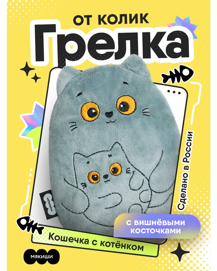 5Мягкая игрушка Мякиши грелка с вишнёвыми косточками Котик с метрикой для новорождённых от коликов подарокОчень понравилась
