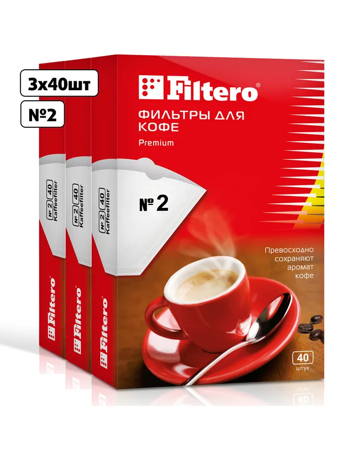 Комплект фильтров Filtero для кофеварки №2/120шт белые Premium