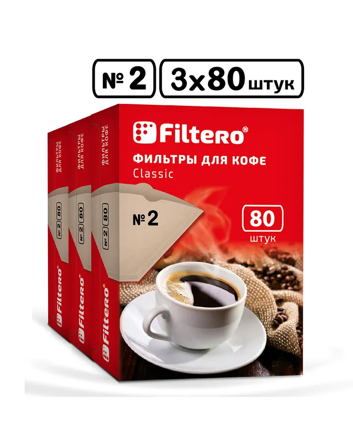 Комплект фильтров Filtero для кофеварки №2/240шт коричневые Classic