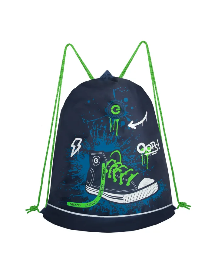 Мешок для обуви GrizzlyКачественный мешок, по ощущениям до 11 класса включительно прослужит. Очень большой, войдет любая зимняя обувь, есть отделньный карман на молнии. Низ мешка каркасный.