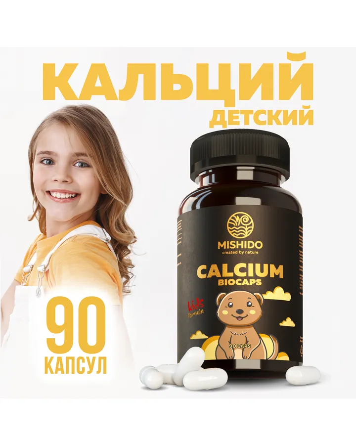 БАД к пище MISHIDO Кальций биокапс кидс 90 капсул массой 800мг