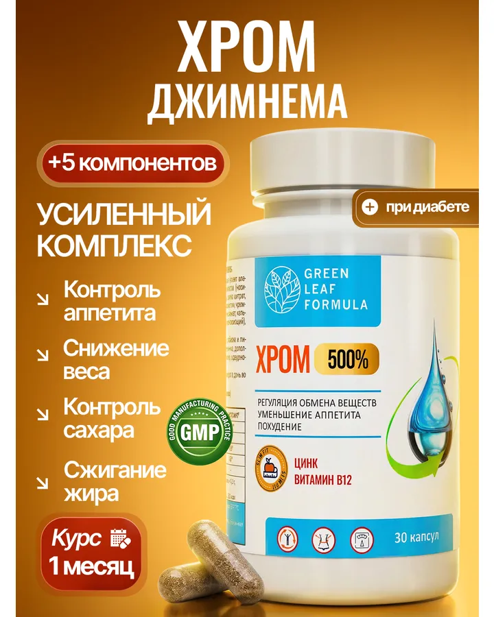 Хрома пиколинат комплекс витаминов Green Leaf Formula для похудения контроль аппетита снижение весадействует мягко, нет чувства голода, которое обычно мешает при диете