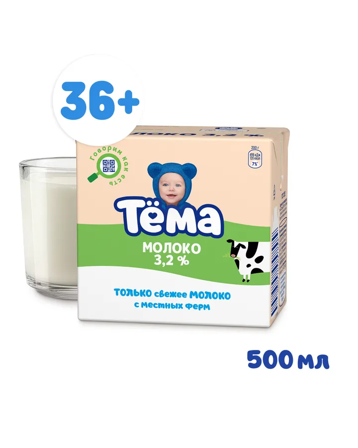 Молоко детское Тёма питьевое ультрапастеризованное с кальцием 3,2% 500 мл
