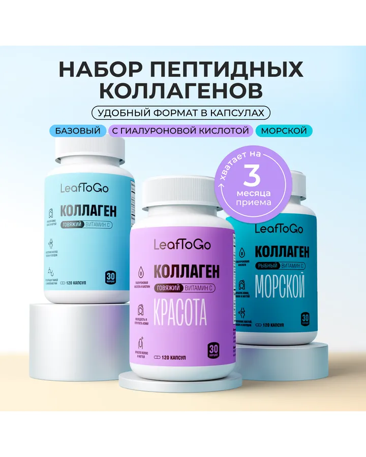 Коллаген пептидный+Витамин С LeafToGo 3шт по 180 капсул