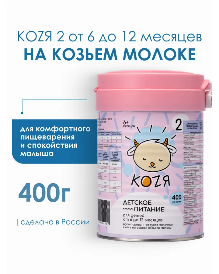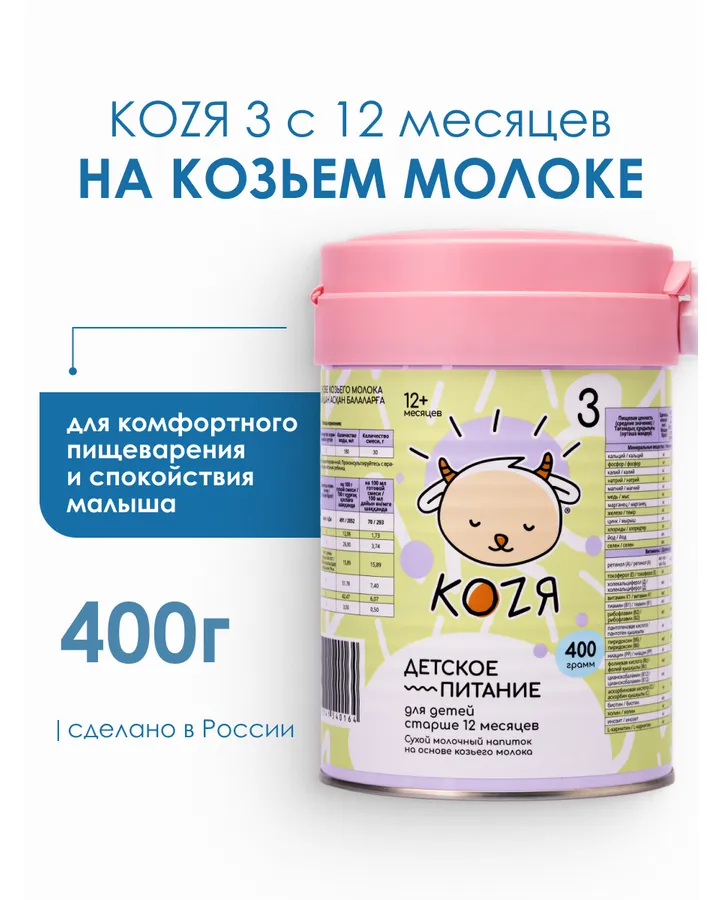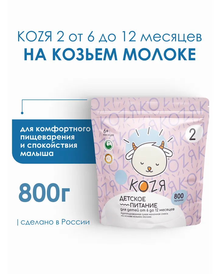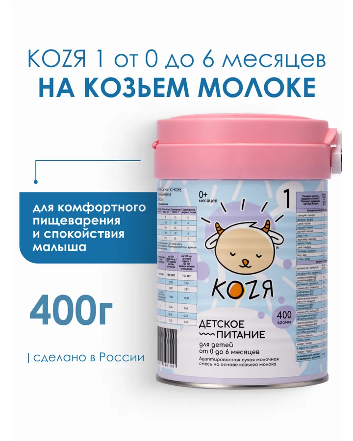 Детская смесь на козьем молоке KOZЯ от 0 до 6 месяцев 400гИспользуем смесь ещё только неделю и в качестве докорма, но пока полет нормальный. Ребёнок ест Козю с аппетитом, хоть она и не очень сладкая. Кожной реакции не отмечено, стул не меняется. Надеюсь, что и дальше будет хорошо.