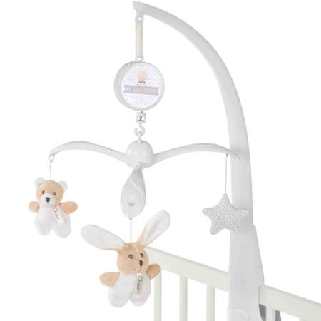 Очень качественный мобиль, в отличие от других двигается с допустимой скоростью, дает возмодность сфокусировать взгляд на предмете. Мелодий и вращений хватает на 15 минут, далее нужно все заново включать.
