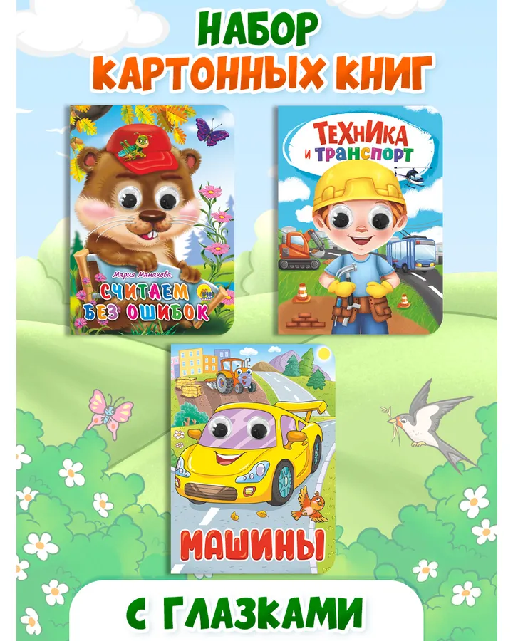 Книжки картонные Проф-Пресс с глазками. 3 шт. Машины+Техника и транспорт+Считаем без ошибок
