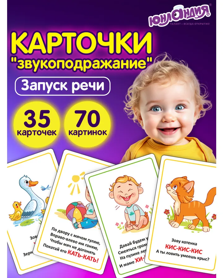 Развивающие карточки Юнландия для малышей Звукоподражание набор 70 штук