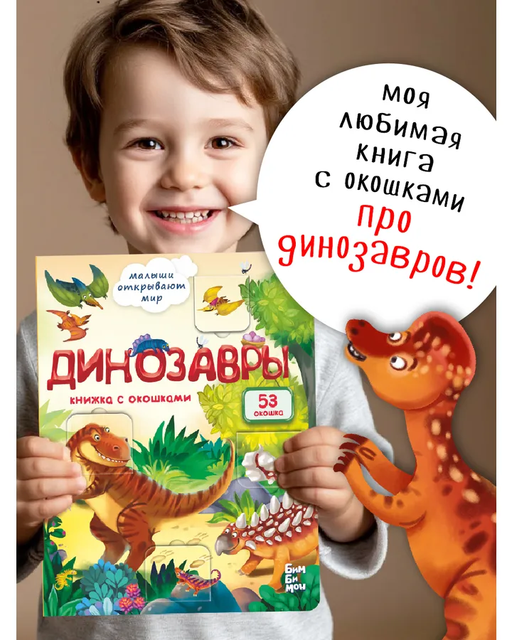 Книжка для малышей BimBiMon с окошками Динозавры Виммельбух