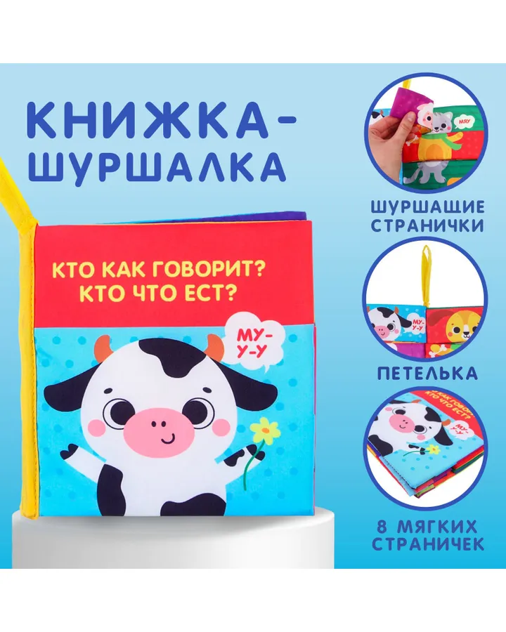 Тактильная развивающая книга игрушка Счастье внутри для малышей с подвижными глазками и фольгой Ферма