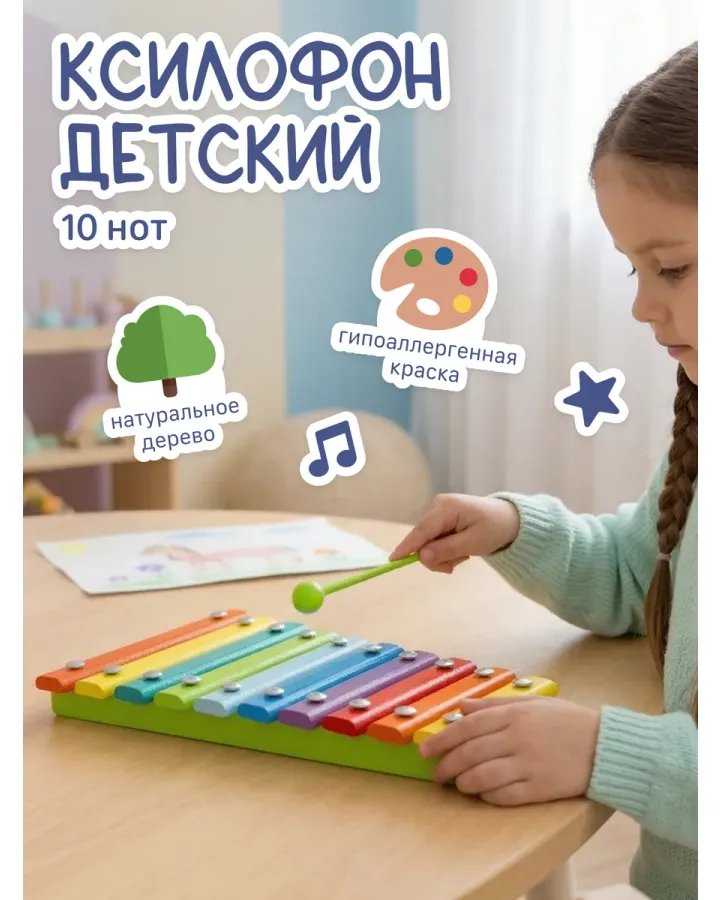 5Игрушка музыкальная Alatoys ксилофонСупер понравилось ребенку 9 месяцев, звучание красивое. Взяла еще один на подарок